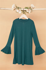 Girls Green Ribbed Long Sleeve Sweater Dress