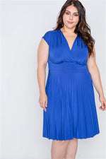 Plus Size Cobalt Pleat Accordion Fit & Flair Dress