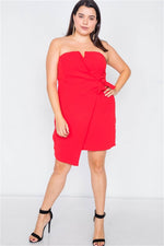 Plus Size Red Sleeveless Mock Wrap Mini Chic Dress