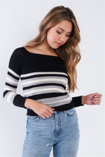 Black Multi Stripe Square Neck Long Sleeve Sweater