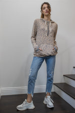 Leopard Print Long Sleeve Stripped Lined Hooded Zip Up Hoodie Top