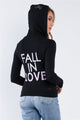 Black Long Sleeve "Fall In Love" Zip Up Casual Hoodie
