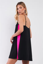 Black & Pink Sleeveless V-Neck Side Stripe Detail Relaxed Mini Dress