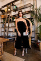 Black Velvet Off-The-Shoulder Front Buckle Belt Jumpsuit