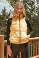 Gold Velvet Sleeveless High Neck Hooded Puffer Vest