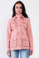 Washed Blush Pink Cotton Front Zip-Up & Button Down Detachable Hood Detail Utility Jacket