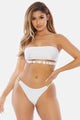White Cali Tube Bandeau Gold Metal Hardware High Cut Bottoms Sexy Bikini Swimwear 2 Piece Set